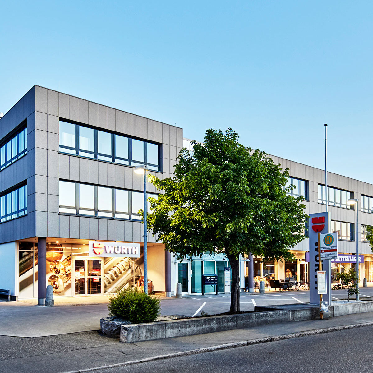 Das Büro- und Fachmarktzentrum schließt direkt an den Ortsteil Filderstadt-Bernhausen an. Im Erdgeschoss des 1997 erbauten Gebäudes befinden sich drei Fachmärkte, im Obergeschoss sechs Büroeinheiten. Die Läden und Büros sind bequem zu Fuß, mit dem Auto oder mit öffentlichen Verkehrsmitteln erreichbar. Es gibt zahlreiche Außen- und Tiefgaragenstellplätze und die Bushaltestelle direkt vor dem Gebäude.