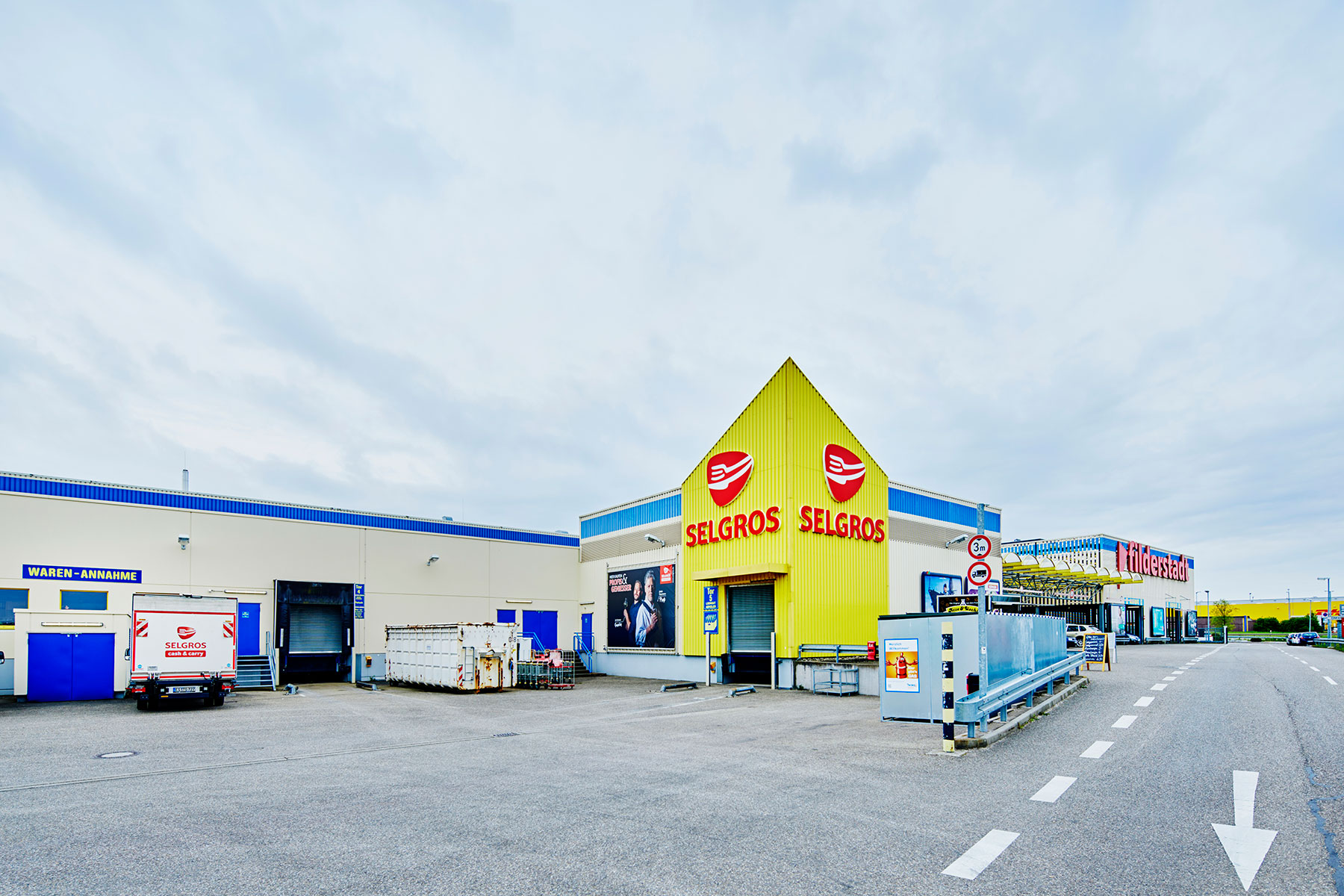 Wichtig für den Großhandel sind eine gute Anbindung an das Verkehrsnetz, großzügige Lager- und Verkaufsflächen sowie Parkplätze. In Zusammenarbeit mit unserem Mieter Selgros entstand 2001 nach Mieterwünschen das Großhandelsgebäude und ein Parkhaus mit 450 Kundenparkplätzen.